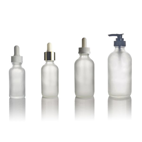 Clear Frosted Glass Boston Round Dropper Bottle 4oz 8oz Cosmetic Bottle